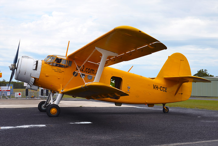 Antonov An-2 VH-CCE was manufactured in Poland in 1989 and was eventually purchased some years ago by the late Barry Hemple and operated out of Archerfield, Queensland (Qld) on joy flights and as an airshow performer. The An-2 was sold to the current owner Saario Holdings Pty Ltd Runcorn, Qld following Barry’s controversial death in a joy flight accident in 2008. Since 2009 the aircraft has attended many Fly-Ins and air shows as well continuing to operate joy flights throughout the country. The aircraft has in recent years been based at Caboolture Qld, however has also been based in Victoria on occasion for joy flight and air show duties.