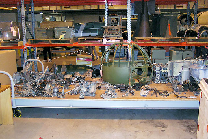 Most of the military equipment and outfitting has long since been removed as has the military paint finish. Once the aircraft had the internal civil interior and insulation removed a bonus was that the WWII paint was still largely in place as were a number of signs and fittings. However a large effort has had to be expended locating and restoring a multitude of correct WWII parts and fittings to meet the high standards of the AWM restoration process. Where an item has not been available it has been replicated from blueprints sourced from the USA to ensure accuracy.