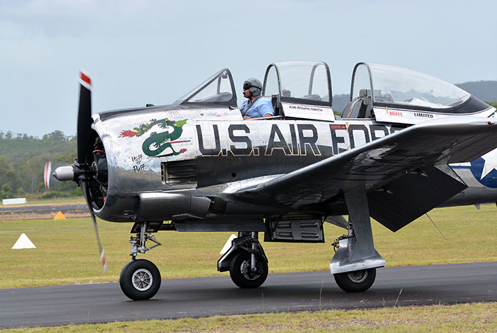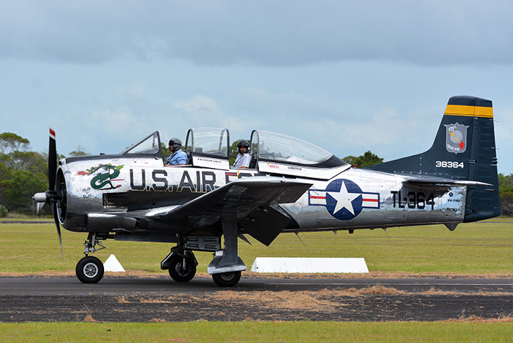 The stars of the show were naturally enough the Warbirds with a good selection of aircraft turning up including Paul Bennet’s TBM3 Avenger, the Caboolture CAC Mustang “Snifter”, the CAC Winjeel, the Archerfield T28 D Trojan and the Toowoomba based T28 A Trojan, the Harvard’s and a gaggle of Yak-52’s. The resident Grumman Mallard also put on a fine display as well.