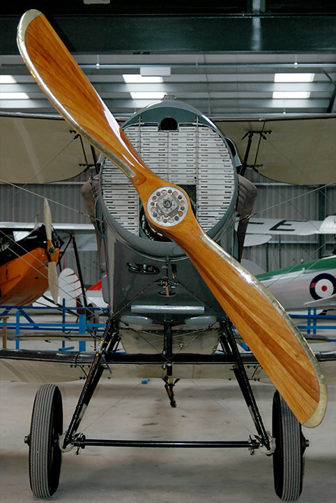 Most No 1 Squadron Bristol Fighters were equipped with 4 blade propellers as they worked better than the two blade units in the desert environment. All of the operational aircraft of 1 and 3 Sqns flew with the Rolls Royce Falcon, an aero engine developed in 1915. It was a smaller version of the Rolls-Royce Eagle a liquid cooled V-12 of 867 cu in (14.2 L) capacity. The versions used were the Mk1 and Mk111.