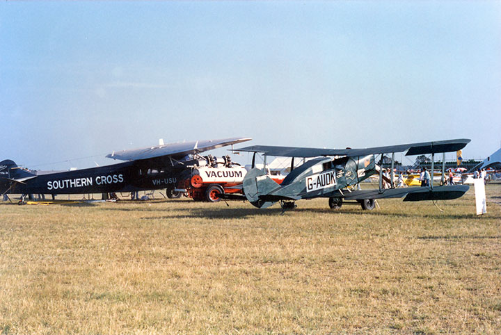 Australia surrendered all its Bristol Fighters at wars end and none joined the RAAF in Australia although a number came to Australia as the civil Bristol Tourer passenger aircraft operated by Western Australia Airways. Two replica flying Bristol Tourers were constructed for film work in Australia in the 1980s and both survive – one at Oakey Queensland, restored as a F.2B, painted to represent one of the aircraft operated by the Army’s No. 1 Squadron in Palestine – C4623 and one still in Bristol Tourer state in a Western Australian Museum.