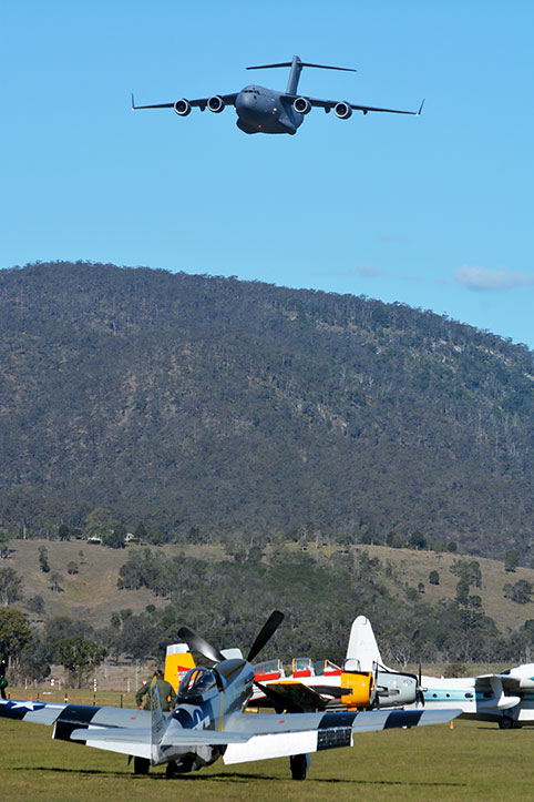 The highlight of the second day was the much anticipated display by an RAAF C17. The huge RAAF transport flew in across the strip illustrating its size and nimble handling and then did several passes around the surrounding hills with the trees as a backdrop – it was a not to be missed sight and on completion did the types signature rapid climb out over the airfield to much applause from the huge crowd.