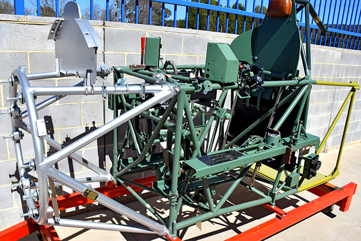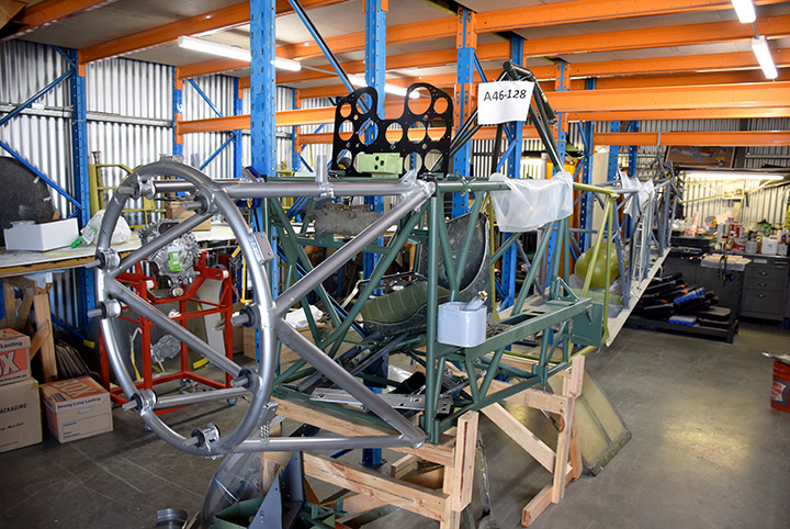 The forward fuselage frame has been fully structurally tested, repaired and accurately repainted and some internal components refitted with more fit out to follow shortly. The Fuselage fuel tank floor support has been restored and is ready to be fitted, the engine mount has been overhauled and is fitted back on to the forward fuselage. A main fuselage fuel tank has been restored and is ready for refitting as are numerous fittings and fixtures from the rest of the fuselage. A46-128 is an excellent base aircraft for restoration as it will contain a lot of original material specific to this aircraft and other Boomerangs not new build components. CAC Boomerang original material is becoming very rare so it is a great benefit to have as much genuine componentry fitted to a restoration.
